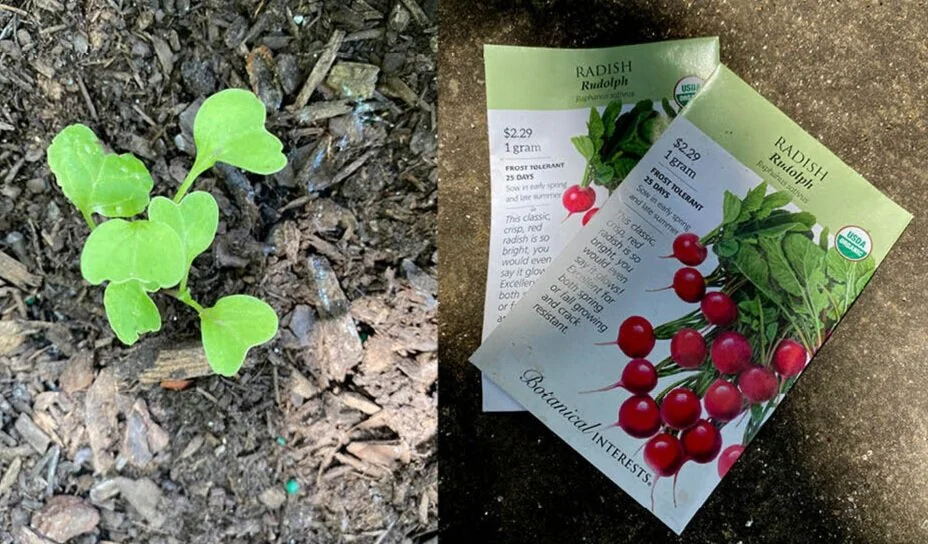 So I gravitated towards them, they are delicious, cold, and sliced with the perfect peppery tang. Taking it one step further I decided to grow my own, I picked up a bag of seeds, planted a row with two seeds in each planting, and within a few days they have sprouted.
